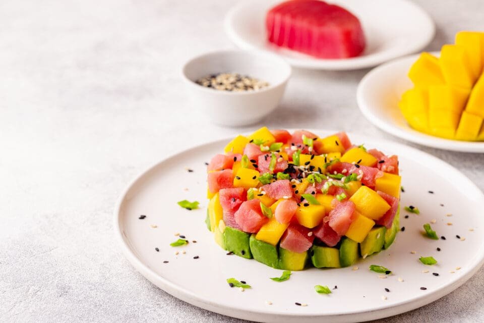 🐟 3. Tartare de saumon, mangue, avocat, citron vert et gingembre